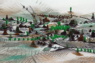 ![]() Ohne Titel. 2008. Acrylic on paper. 2 x 2 x 3,5 cm Planrelief 02. 2008. Acrylic on paper. 24,5 x 10,4 cm (Detail siehe oben) |